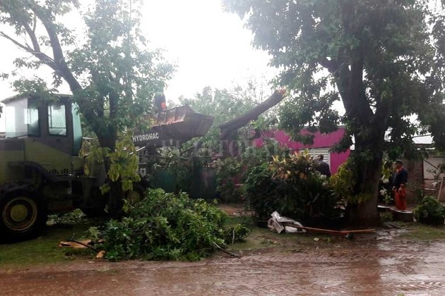 Cuadrillas municipales, personal de la Empresa Provincial de Energía y de los servicios de emergencias trabajaban para recomponer la situación.