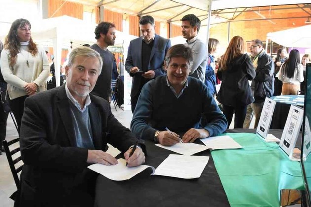 La firma fue presidida por el intendente de Funes, Roly Santacroce, y el presidente de la Fundación, Gabriel Redolfi. También participaron el secretario de gobierno, Martín Papini y directivos de Junior.