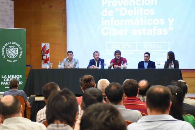 El taller se dictó en la tarde de ayer en el Auditorio Municipal. En el mismo se capacitó a los presentes acerca de diversos temas: Internet, Grooming, Delitos informáticos, Ciberestafas, (Phishing, Vishing, SIM Swapping, Skimming, Cardingentre), BEC, Estafa Romántica, Violencia Digital, Redes Sociales, Juegos en línea, Privacidad, Identidad Digital, Ciberseguridad, Zero Trust, Casuística e investigaciones.