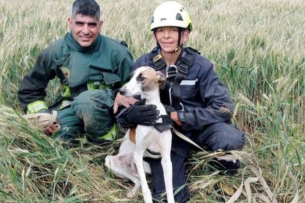 Efectivamente, luego el perrito galgo, marrón y blanco, fue observado por veterinarios que constataron que no tenía ninguna lesión visible, por lo que el operativo de rescate salió redondo.