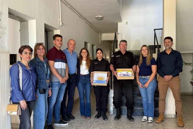 La jornada había comenzado en la Comisaría 6°, donde Galnares entregó una bandera de ceremonia gestionada por el intendente Tito Gizzi. Allí estuvieron presentes el concejal Guillermo Gallo, la comisaria Carina Ferreyra y el subcomisario Sebastián Ochoa. En ese marco, la diputada destacó: “Este símbolo reafirma el valor de la institucionalidad y nuestra cercanía con quienes cuidan la comunidad”.