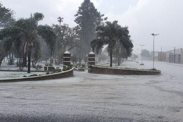 La primavera llegó con granizo en algunas localidades del centro de la provincia de Santa Fe. En la tarde de este miércoles se conocieron imágenes de amplias zonas cubiertas de piedras.