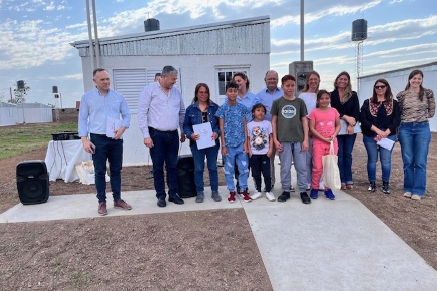 Funcionarios de la Secretaría de Habitat de la provincia, junto a autoridades locales y a la diputada Jimena Senn, encabezaron el acto de entrega de unidades habitacionales de emergencia económica a familias de esa localidad.