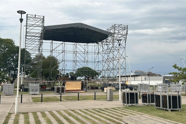 Avanza el armado del escenario de gran porte que será sede del acto oficial y los espectáculos.