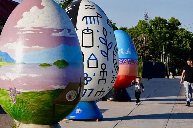 Los huevos, de 1.90 metro de alto, quedarán exhibidos en el Paseo durante todo el fin de semana para que las familias puedan visitarlos y sacarse fotos.