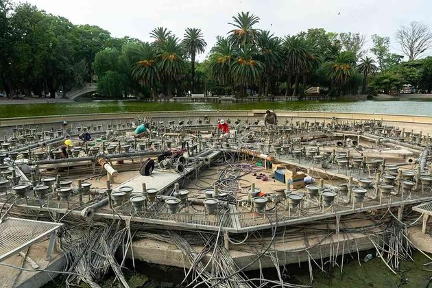 En total se pondrán a nuevo 222 electroválvulas, más de 250 toberas y más de 400 placas led. También quedarán reemplazadas las 31 bombas, tableros de protección, cableados y los 100 metros que van de la fuente a la isla del lago, y se capacitará al personal que opera la fuente.