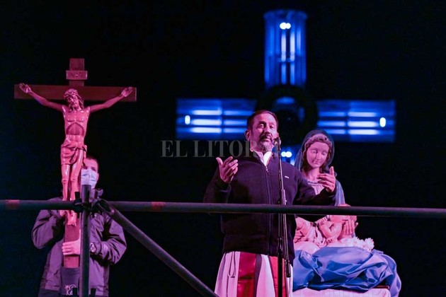 Miles de católicos participaron este viernes por la noche del tradicional Vía Crucis que concluyó con una misa celebrada por el padre Ignacio Peries, por las calles adyacentes a la Parroquia Natividad del Señor, en el barrio Rucci, de la zona norte de la ciudad santafesina de Rosario.