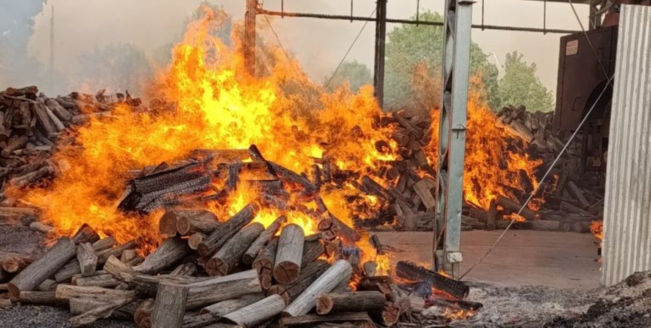 Trabajaron cuatro dotaciones de tres localidades. El fuego se inició en un montículo de leña que se usa para la caldera. Un servidor público sufrió heridas.