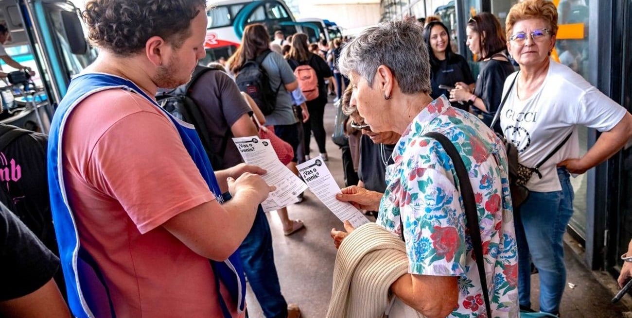 "Las y los divulgadores fueron capacitados por personal de Salud con cuestiones básicas para ser explicadas de manera rápida. Pensemos que el que llega de un viaje está cansado y quiere volver rápido a su casa, y el que sale de viaje también, por eso la información tiene que ser concreta, muy breve, y se llevan también un folleto que pueden leer en el viaje o en sus casas", detalló la funcionaria sobre el operativo.
