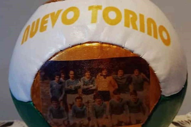 La pelota de fútbol fue intervenida por dos artistas locales: Fernando Polini y Emilce Manero.