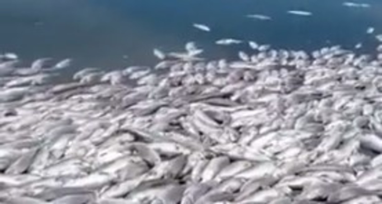 El hecho fue compartido por un usuario de Twitter que grabó con su celular los restos de los cardúmenes amontonados sobre la tierra, a un costado del agua, pero también flotando ya sin vida sobre la laguna. El video rápidamente se viralizó por las redes sociales.