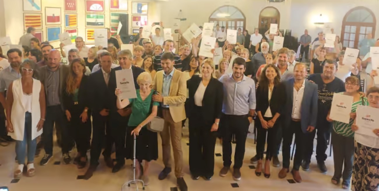 Continuando con su extensa agenda en el sur santafesino, en horas cercanas al mediodía el gobernador Maximiliano Pullaro encabezó un acto en el salón de la Asociación Española de Socorros Mutuos de Venado Tuerto, donde hizo entrega de escrituras de viviendas Fonavi a familias de la región y firmó convenios con la municipalidad de Venado, las comunas de Sancti Spíritu y Carreras, y con el Jockey Club.