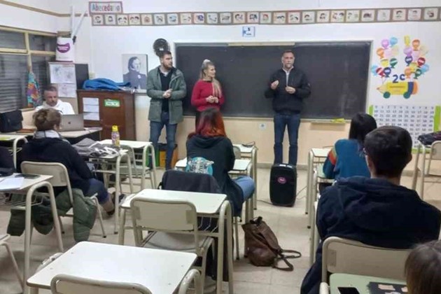 En esta oportunidad, el secretario de Producción, Empleo e Innovación, Diego Peiretti; el coordinador de Empleo, Juan Ignacio Ruggia y la coordinadora de A la Par, Florencia Armando, se acercaron a dialogar sobre el programa con alumnos y alumnas de la Universidad Nacional de Rafaela (UNRaf), en las instalaciones de la Escuela Nº 475 "Bernardino Rivadavia".