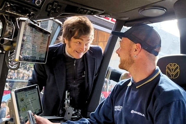 Un rafaelino recibió a Javier Milei en su máquina agrícola: "Fue un momento inesperado, pero de gran orgullo"