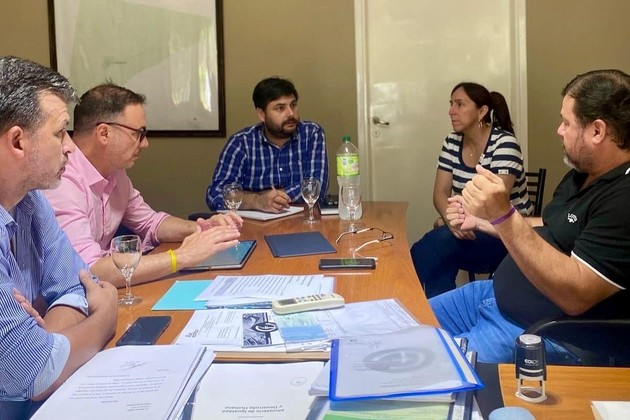 El funcionario estuvo reunido con el presidente comunal, Hernán Sopranzetti, el senador provincial Dr. Leonardo Diana, y el director provincial de Gestión Territorial de la Secretaría de Recursos Hídricos, Ramiro Pighini.