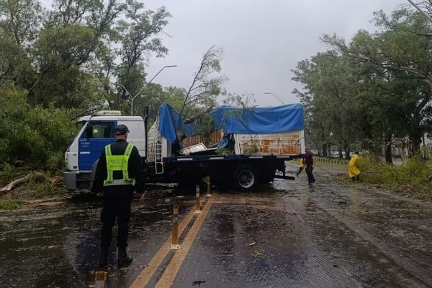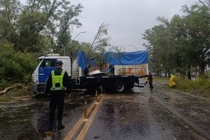 El conductor manifestó que se desplazaba a bordo de un camión Devol con acoplado por la travesía urbana de la vía nacional cuando sintió un fuerte impacto en la cabina, advirtiendo luego la caída del árbol, lo que provocó roturas en el parabrisas, la cabina, el chasis y el acoplado que, literalmente quedó partido al medio.