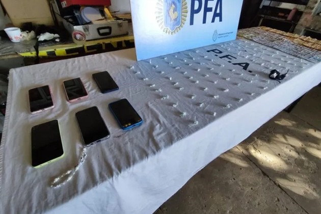 En el procedimiento, se logro incautar una gran cantidad de envoltorios de cocaína ya fraccionados en dosis para la venta al menudeo como también, un trozo compacto de esa misma droga además de teléfonos celulares, anotaciones y otros elementos vinculados a la actividad delictiva.