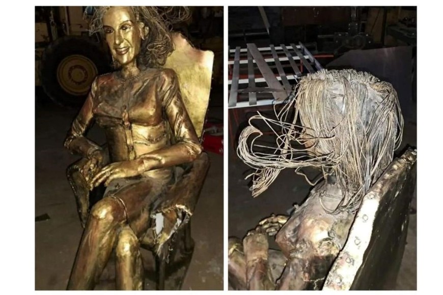 Melero se enteró por Sur24 de lo sucedido con su trabajo, poniéndose rápidamente en contacto con las autoridades municipales que habían retirado la estatua para su reparación, aunque en principio, será una tarea que desarrollarán artesanos locales. La obra sufrió daños en el cabello, se le sacó un aro y el sillón donde está sentada.