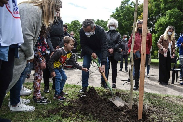Pablo Javkin encabezó una nueva plantación de árboles en el Bosque de la Memoria en Rosario