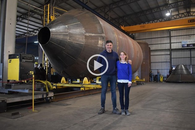 Eva Albert (38) y Rodrigo López (43) casi con la misma casualidad que se conocieron, pusieron un pie para trabajar en Vaca Muerta. Hoy están bien parados sobre una de las formaciones geológicas de shale más importantes del mundo, gracias a la fabricación de equipos para el transporte, manipuleo y acopio de sólidos que son directamente destinados a las industrias del oil y el gas.