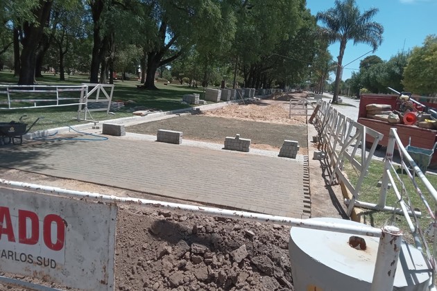 Desde la semana pasada personal de la Comuna de San Carlos Sud comenzó con la ejecución del pavimento articulado en el Paseo “Alcides Francischetti” ubicado en el lado este de la plaza local.