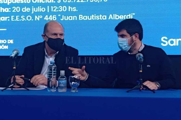 Este mediodía arribó a Venado Tuerto el gobernador Omar Perotti, acompañado, entre otros funcionarios, del secretario de Integración y Fortalecimiento Institucional, José Freyre; el intendente anfitrión Leonel Chiarella; y el director regional de Educación, Sebastián Roma, a los efectos de proceder a la apertura de sobres en el marco de la licitación pública para la obra de terminación del edificio de la Escuela de Educación Secundaria Orientada N°238.