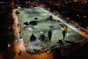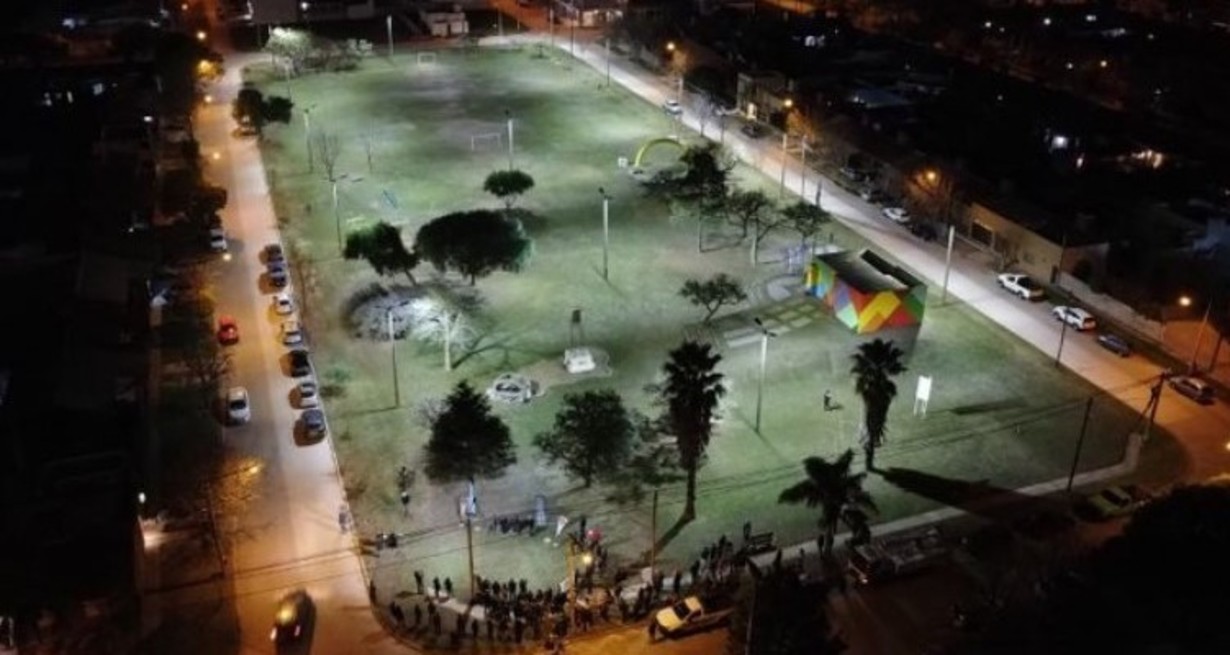 Vecinos y funcionarios reunidos en la plaza del barrio San Cayetano.