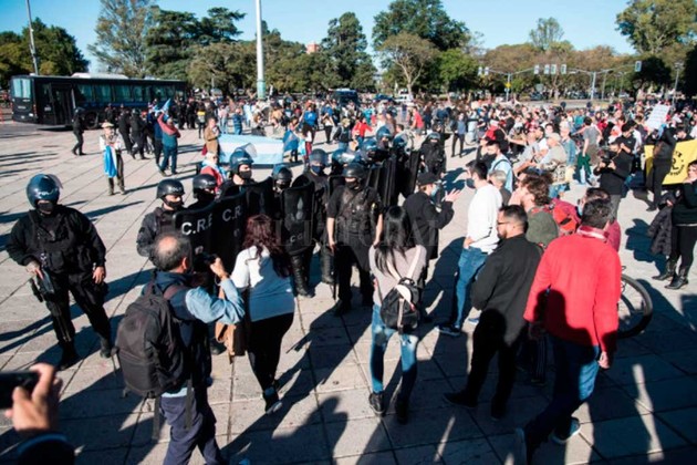 La segunda protesta llevada a cabo en menos de 48 horas en la ciudad de Rosario por un grupo denominado "Médicos por la verdad", que lidera el oftalmólogo Marcelo Arriaga, terminó en un bochornoso escándalo que incluyó forcejeos, escenas de pugilato, gritos, amenazas y 30 detenidos.