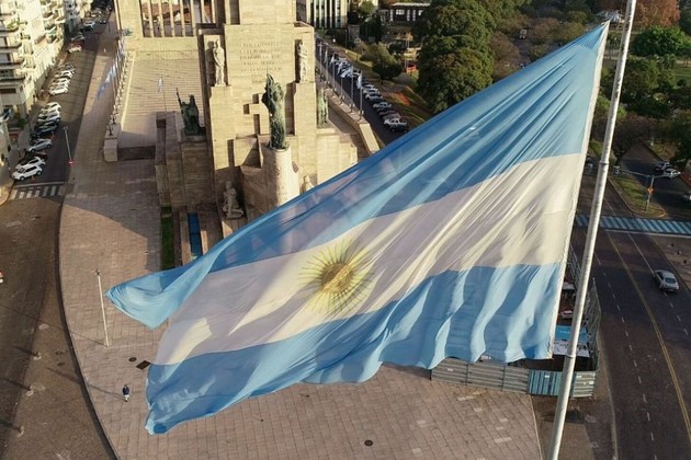 El intendente de Rosario, Pablo Javkin, encabezó el acto de izamiento de la bandera mayor en el Monumento Nacional a la Bandera este viernes, a 170 años de la declaración de ciudad de la Cuna de la Bandera.