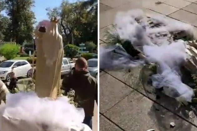 Comenzando la procesión la virgen fue cargada por los vecinos y sacada por el atrio de la parroquia, pero llegando a la escalinata de ingreso la virgen se cayó directo al piso y se rompió por completo. El video, que ya trascendió por todas las redes sociales, logró captar el momento preciso donde la imagen de la virgen se desprende de su soporte, cayendo y volviéndose irreparable. Entre gritos y llantos, y luego de recoger los pedazos, el arzobispo Fenoy, invita a los vecinos a continuar con la procesión sin la estatua alrededor de la plaza San Martín.