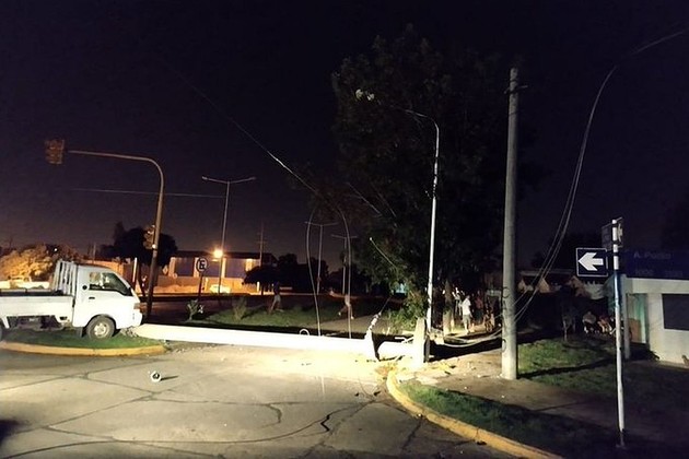 En horas de la noche de este martes, una camioneta se accidentó contra una columna de luz, en la intersección de la calle la Ruta 70 y calle Podio, dejando a varios barrios de la ciudad sin luz.