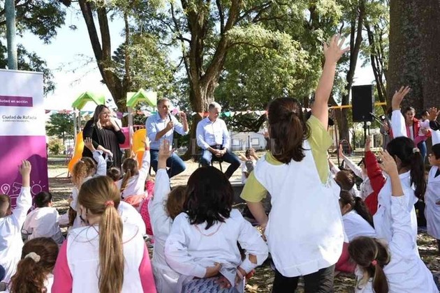 Por su parte, Vanesa Macagno agradeció "a la directora y docentes de la Escuela Villa Rosas que cruzaron hacia la plaza para realizar una pequeña muestra de lo que serán los Talleres Barriales de este año en Rafaela".