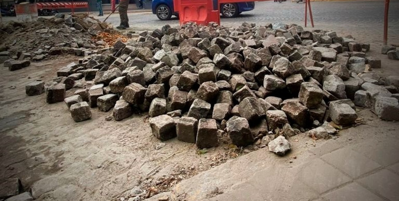 El trabajo artesanal de las cooperativas en la restauración del adoquinado | Crédito: RADIO RAFAELA