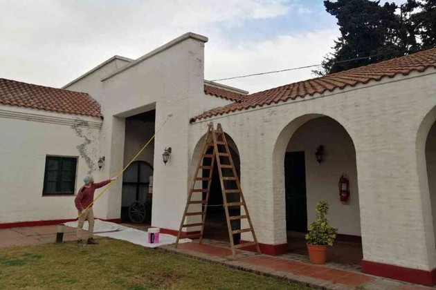 En primer término, se pintaron las aberturas de color verde, así como el cielorraso de madera, que fue lijado y barnizado. Ahora se están lavando las tejas de la galería, mientras se realizan tareas de pintura en paredes, arcadas y zócalos.