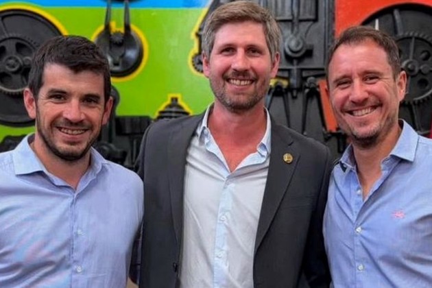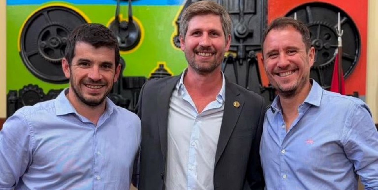 Santiago Meardi, junto al intendente Leonel Chiarella (izq.) y al presidente saliente del Concejo, Juan Ignacio Pellegrini (der.).