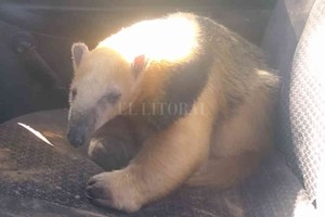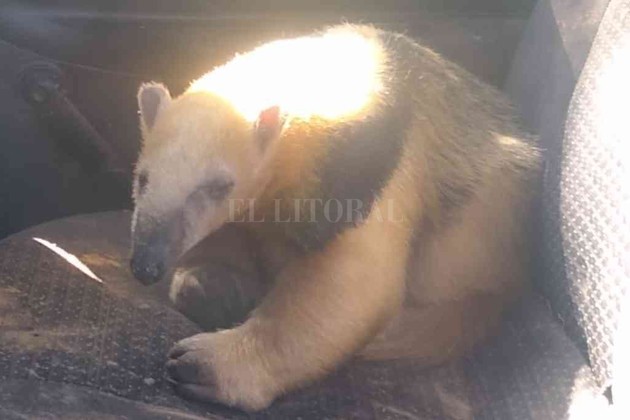 El oso melero (Tamandua tetradactyla), una especie de tamanduá típica de Sudamérica, fue avistado en la copa de un árbol por vecinos que rápidamente dieron cuenta a las autoridades.