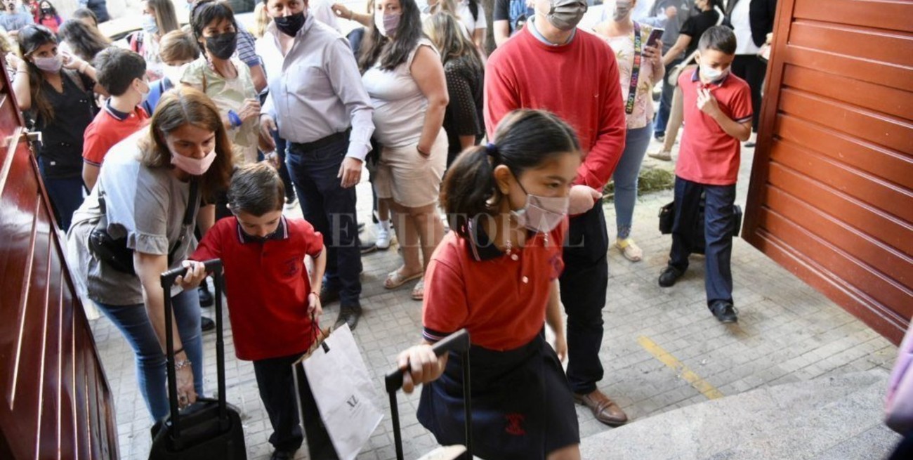 Saludos, reencuentros, sonrisas, abrazos. El primer día de clases en algunas escuelas de Rosario se vivió con la alegría propia de volver a ver a aquellos compañeros de aula que en grandes pasajes de 2020 y 2021 se extrañaron. También fue un momento placentero para los padres, que se reencontraron con sus pares. La socialización, una herramienta tan necesaria para cualquier sociedad, regresó en un ámbito ideal para desarrollarse como un colegio.