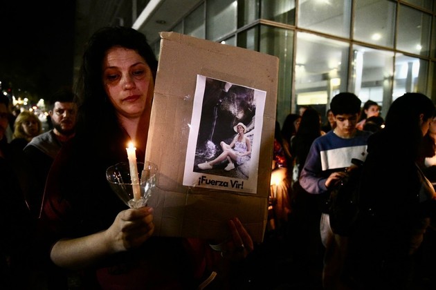 Familiares, alumnas y amigos de Virginia Ferreyra, la profesora de danzas árabes herida en zona sur en un tiroteo del que su madre no sobrevivió, realizaron este lunes al anochecer una masiva concentración frente al Hospital de Emergencias Clemente Álvarez (Heca), donde la joven continúa internada en grave estado.