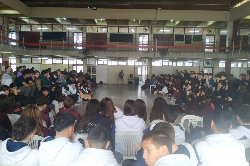 ¿Qué es bullying para ustedes?, arrancó preguntando a los chicos en el patio interno del Colegio Nacional pasadas las once de la mañana, Ayrton Oviedo, frente a más de 200 alumnos y docentes. El abordaje coloquial, ágil y descontracturado captó inmediatamente la atención de todo el personal que se mantuvo atento y participativo por más de una hora y media.