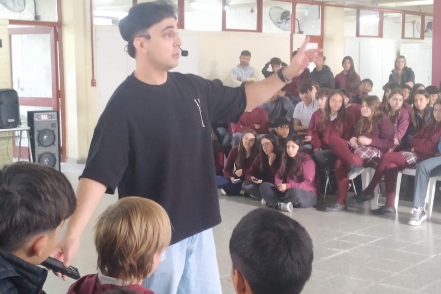 Ayrton Oviedo, un actor de 27 años fue el encargado de entablar una charla mano a mano con jóvenes de primero a quinto año de Rufino sobre bullying y cyberbullying. Visitó escuelas públicas y privadas y abordó la temática de forma sensible y horizontal. Los chicos se mantuvieron atentos, brindaron aplausos y hasta quisieron hacerse selfies con él-.