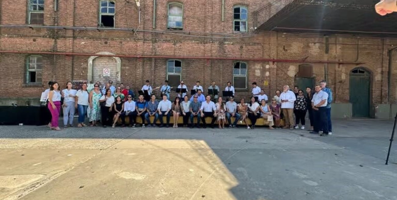 La escribana Andrea Bruno fue la responsable de fiscalizar la firma, y la Banda Municipal de Música se sumó a la celebración aportando sonido y melodías durante toda la previa, mientras llegaban los invitados.