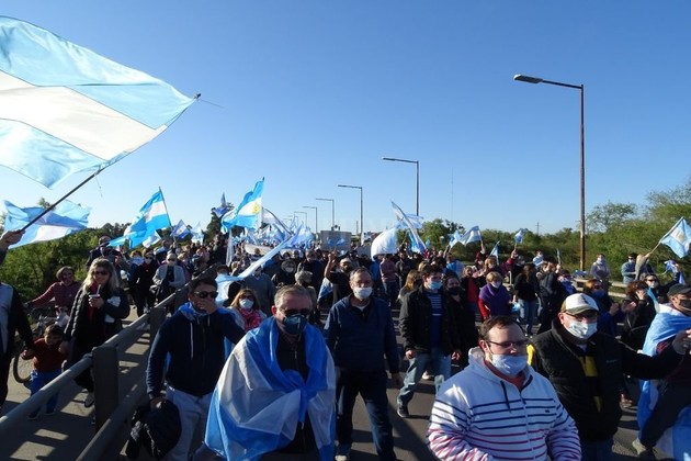 “Sin participación no hay futuro, respeto a la libertad, la República y la propiedad privada”, fue en este caso la consigna general que a través de las redes sociales y aplicaciones de mensajería instantánea llamó a movilizarse. Las pancartas reflejaron el malestar reinante con el gobierno nacional: “Si estoy equivocado salgan a la calle y recuérdenmelo” y “hoy nos dice que estamos equivocados ¿al final?”, rezaba uno, en referencia a la frase que pronunciada por el presidente Alberto Fernández en el acto de asunción.