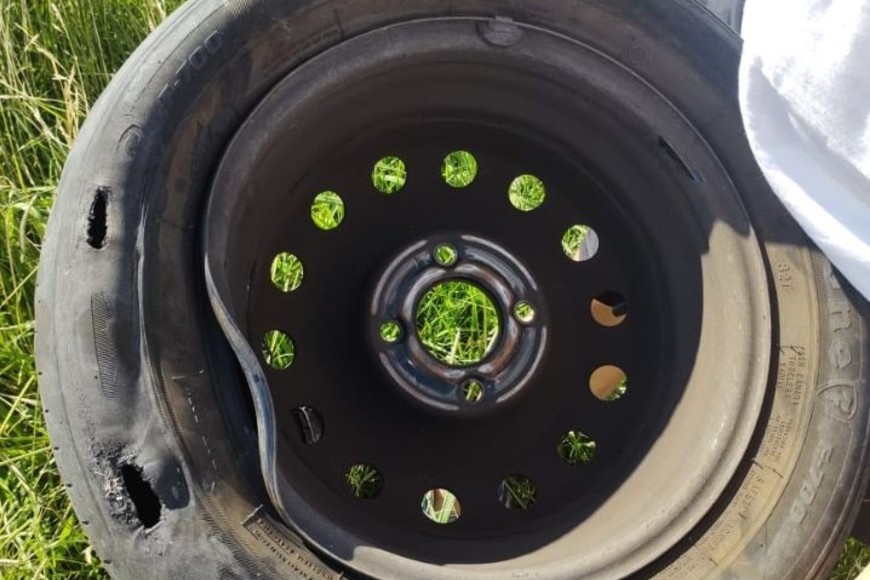 Sucede que para fin de año, su hijo, que trabaja en la ciudad de Rosario, regresaba a casa en su auto particular, cuando se metió en un pozo que le destrozó el tren delantero y le reventó cubiertas y desformó las llantas.