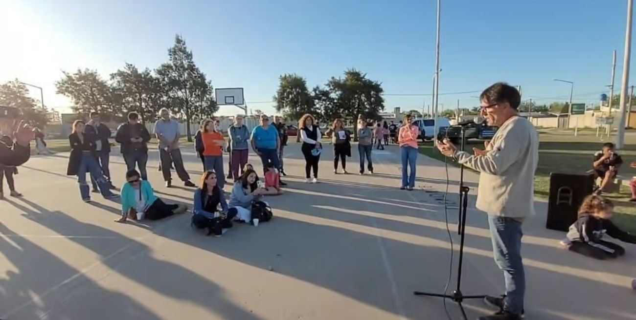En su alocución, sobre la llamada Plazoleta de los Sueños, en Covacevich y Eva Perón, compartió el Mensaje a las Comunidades, con motivo de las próximas elecciones presidenciales, suscripto por el Grupo de Curas de los 100 Pueblos Pobres, al que calificó como “heredero del Movimiento de Sacerdotes para el Tercer Mundo, una de cuyas figuras más emblemáticas fue el Padre Carlos Mujica, junto a muchos otros curas que entendieron que el Mensaje del Evangelio está al lado de los pobres y que participaron de las luchas por la liberación”.