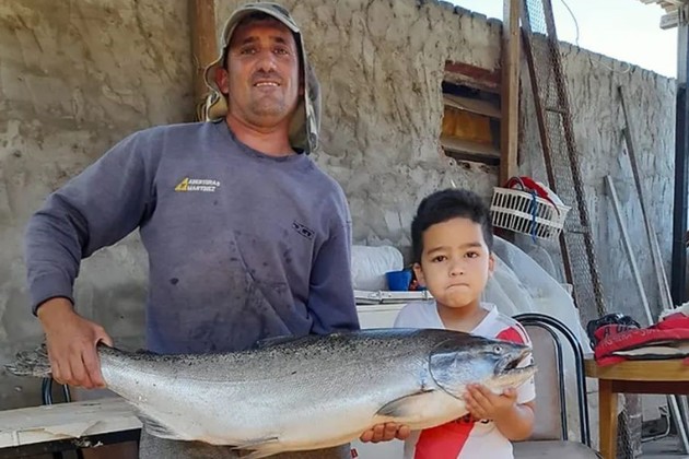 “Estaba con mi hermano en la lancha y veo una pieza enorme, de unos 12 kilos. Me di cuenta que era un salmón porque otro muchacho había sacado uno igual hacía unos días y yo había visto las fotos. Nunca había visto un pez así” relató Emiliano, quien describió al animal como “muy pesado, macizo, con dientes visibles y un tipo de escama que llama la atención”.