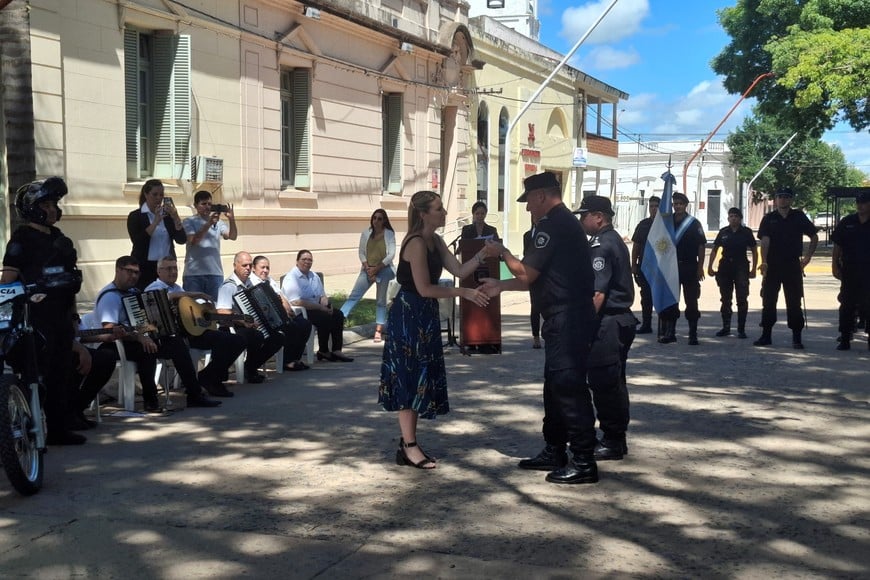 El acto, realizado frente a la jefatura policial, contó con la presencia de la Secretaria de Gestión Institucional del Ministerio de Justicia y Seguridad de Santa Fe, Virginia Coudanes, el senador Oscar Dolzani, autoridades locales, jefes policiales y la comunidad en general.