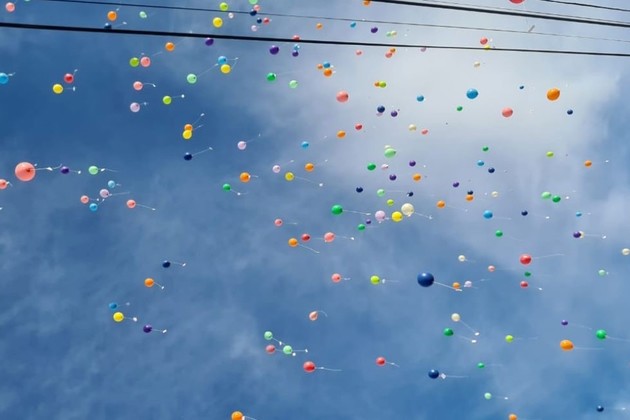 La suelta de globos que organizó la comuna del departamento Caseros.