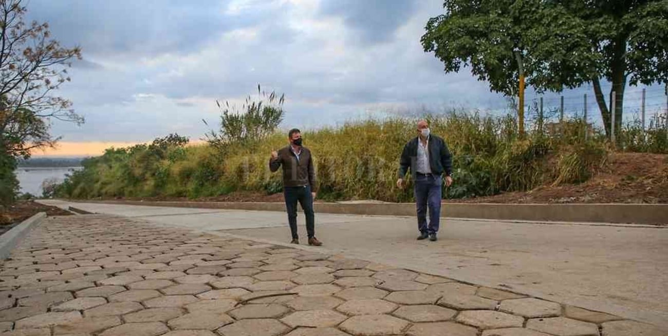 Ya finalizada la construcción de la calzada de hormigón, los trabajos ahora avanzan con la ejecución de desagües y cordones. Luego se instalarán luminarias led y en una etapa posterior comenzará el asfaltado de la costanera a orillas del río en un tramo de 150 metros hacia el norte, donde habrá un sector para la pesca y el descenso de pequeñas embarcaciones.