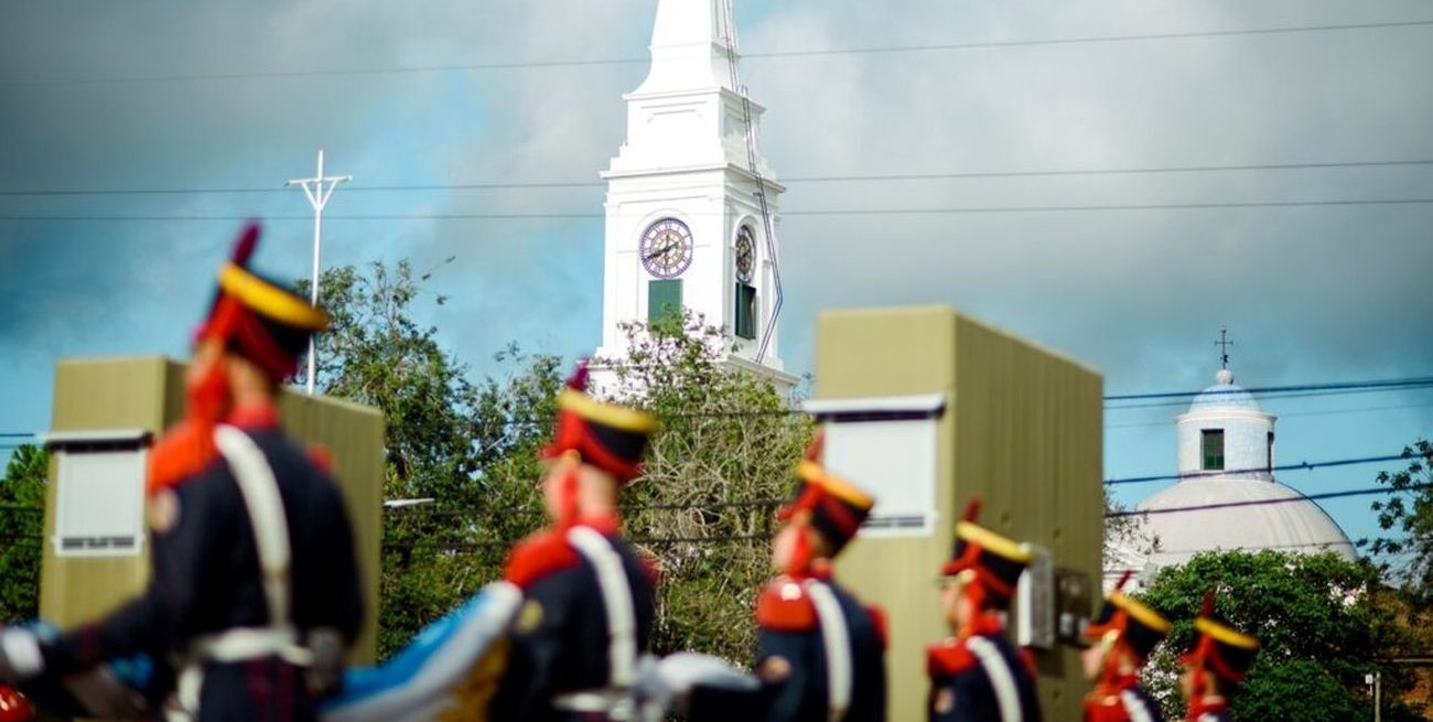 La actividad había comenzado minutos antes, con un izamiento en el Pórtico de la Gloria y la colocación de una ofrenda floral en el busto de Manuel Belgrano, ubicado en Sargento Cabral y Belgrano, al cumplirse el 212º aniversario del primer enarbolamiento de la bandera argentina.