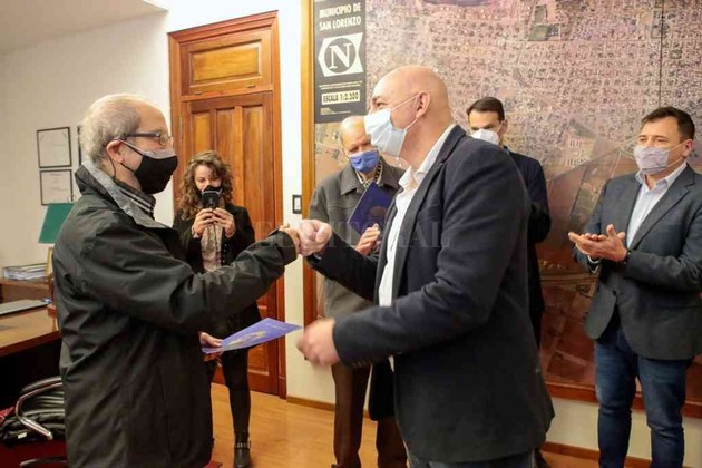 Mediante la sanción de los decretos Nº 1476 y Nº 1477, el intendente Leonardo Raimundo efectuó un reconocimiento público a la labor del investigador científico Raúl Eduardo Bolmaro y del empresario José María Caramuto, de destacada trayectoria profesional. Este jueves los recibió en el despacho de Intendencia y les entregó una copia de las resoluciones en un encuentro del que también formó parte el concejal Oggero.